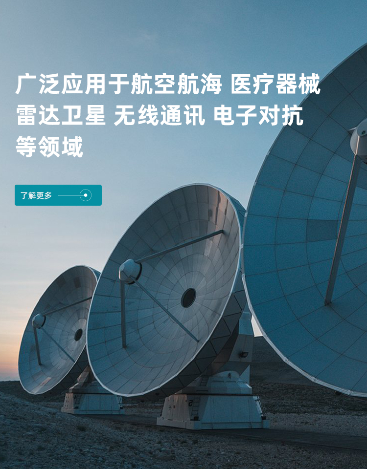 我們?yōu)檐娛潞蛧?guó)防應(yīng)用提供高機(jī)械穩(wěn)定性、溫度穩(wěn)定性、適用于嚴(yán)苛惡劣環(huán)境的軍品級(jí)功分器、電纜、轉(zhuǎn)接器等射頻器件。